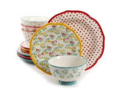 مجموعة أواني طعام The Pioneer Woman Timeless Floral & Retro Dot المكونة من 12 قطعة