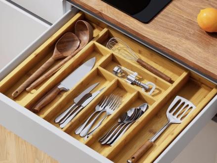 قابلة للتوسيع من أكثر من 12 إلى 19 بوصة، صينية الأدوات هذه متعددة الاستخدامات لأنها جذابة. نظرًا لأنه مصنوع من الخيزران المتين، يمكنك الشعور بالرضا بشأن استدامته البيئية. أنا أيضًا أحب مرونته – فهو قابل للتعديل ليناسب أي درج تقريبًا بدون فجوة ويسمح بتخزين إضافي عند الحاجة. وفر 50% مع القسيمة.