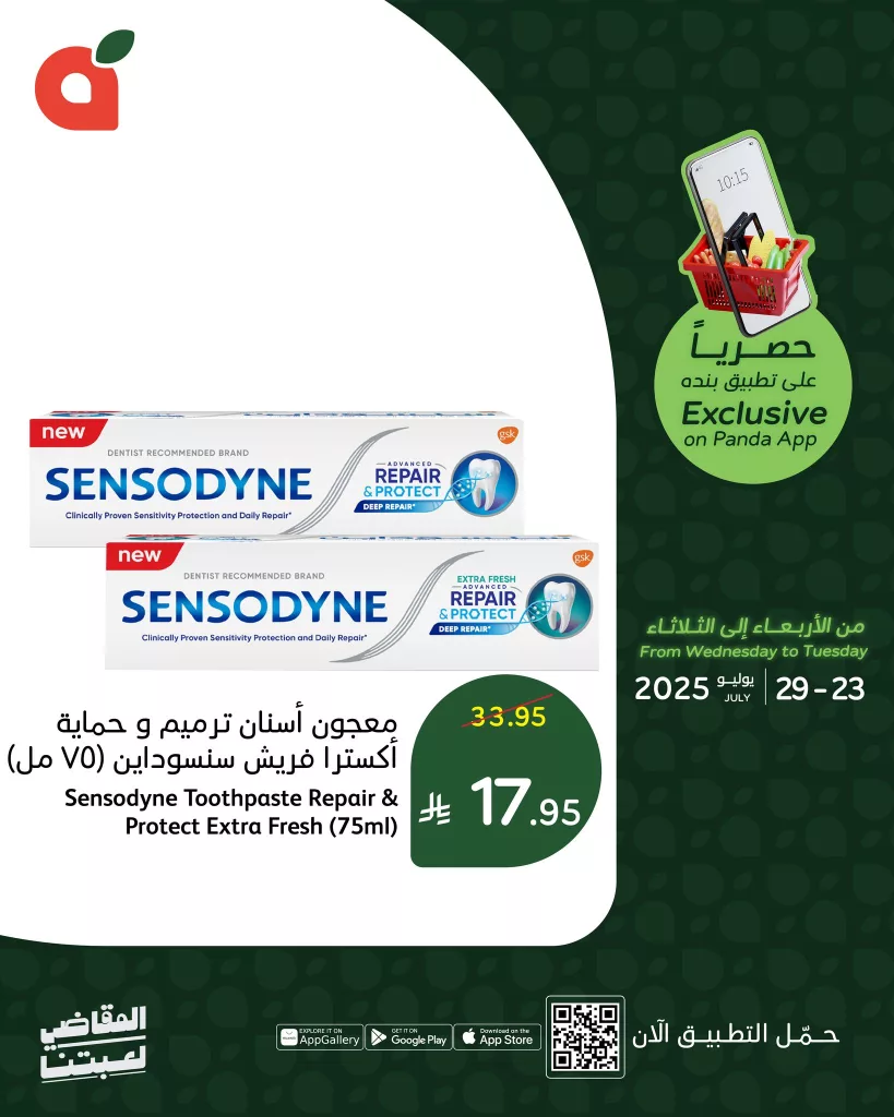 - معجون أسنان ترميم وحماية إكسترا فريش سنسوداين (75 مل) – 17.95 ريال