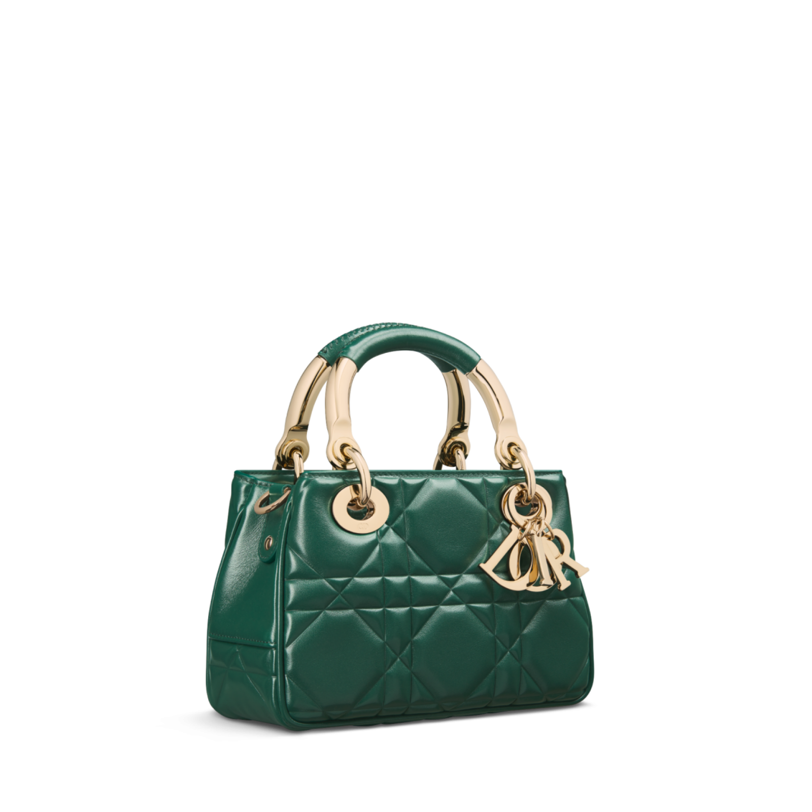 وقد صنّعت في مشاغل ديور الحرفيّة وتجمع بين نمط “كاناج” بأحجام مختلفة، ممّا يُعزّز شكلها الهندسيّ الآسر. يزدان المقبضان بالجلد والمعدن، وتتخلّلهما رموز ديور التزينيّة الجالبة للحظ.