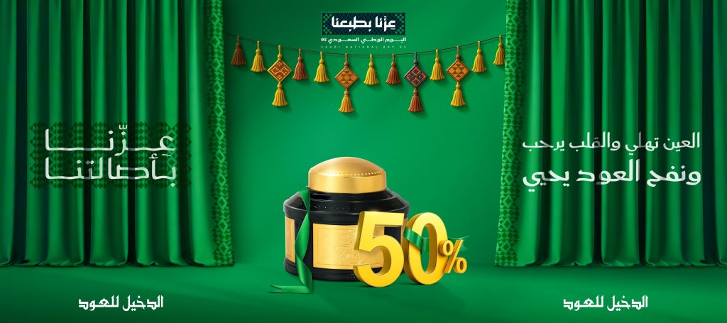 عرض الدخيل للعود الذي أعلن عن تخفيضات قوية بمناسبة اليوم الوطني السعودي 95 حيث يقدم خصماً يصل إلى 50% على مجموعة من منتجاته المميزة هذه العروض لا تفوت استفيدوا من تخفيضات اليوم الوطني