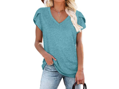 تي شيرت ويهول بأكمام بتلات ورقبة على شكل حرف V