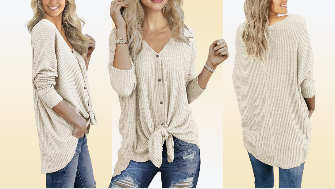 كتب أحد المراجعين: “أنا أحب تمامًا مدى روعة هذا القميص”. “لقد اكتسبت بعض الوزن مؤخرًا وهذا القميص يخفي ذلك جيدًا. أحب الطريقة التي يمكنك من خلالها ربط القميص بأطوال مختلفة إذا اخترت وكيف تظهر الرقبة على شكل حرف V عظمة الترقوة.”
