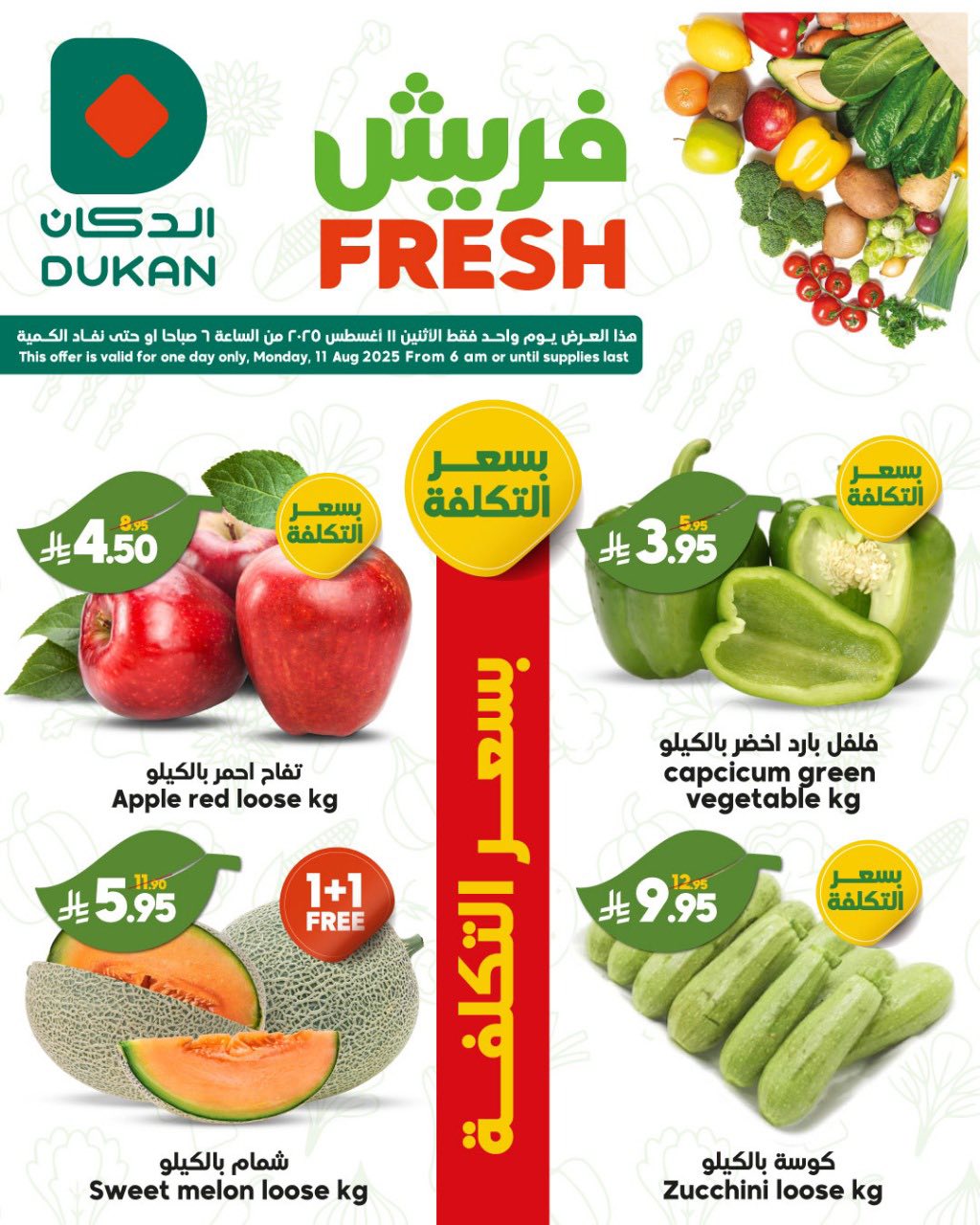 عروض الدكان جدة الاثنين 11 اغسطس 2025 تقدم تشكيلة واسعة من المنتجات الطازجة والمعلبة مثل المخلل المكسيكي والخيار المخلل والزيتون الكالاماتا بالإضافة إلى الأسماك المدخنة والأجبان المتنوعة كما تتضمن العروض منتجات الألبان الطازجة و تشمل أيضا الخضروات والفواكه الطازجة مثل العنب الأبيض والأحمر والبصل والبطاطس
