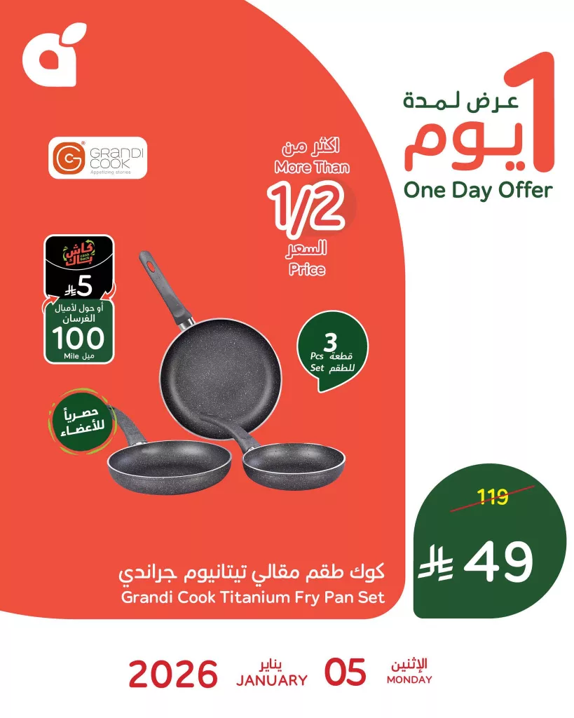 عروض بنده السعودية بتقدم ليكم اليوم احدث عروض بمناسبة اقتراب شهر رمضان الكريم الاثنين 5 يناير 2026 الموافق 16 رجب 144هـ و تشمل اليوم علي طقم مقالي تيتانيوم استفيدوا من عرض أكثر من نصف السعر تابعونا علي موقعكم عروض توداي ليصل اليكم كل جديد