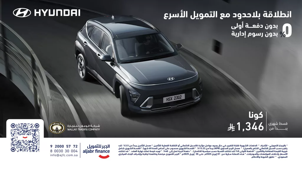 تُعد عروض السيارات في السعودية من أكثر العروض التي تحظى باهتمام واسع من العملاء الباحثين عن اقتناء سيارة جديدة بتمويل ميسر وشروط مريحة تناسب احتياجاتهم المالية حيث توفر العديد من الشركات برامج تمويل متنوعة تشمل تقسيط السيارات بدون دفعة أولى أو بدون رسوم إدارية مما يجعل امتلاك سيارة أحلامك أكثر سهولة ويسر ومن بين هذه العروض المميزة عرض شركة الجبر للتمويل بالتعاون مع شركة الوعلان للتجارة على سيارة هيونداي كونا والذي يأتي بتمويل سريع وميسر بدون دفعة أولى وبدون رسوم إدارية