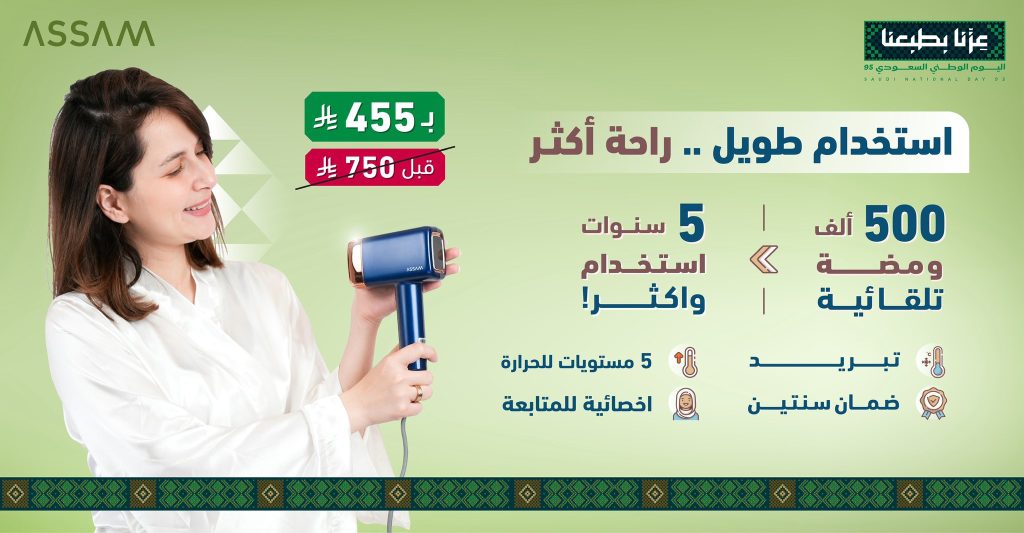 عرض جهاز إزالة الشعر من ASSAM المقدم من متجر واو للتجميل | WOW والذي يأتي بخصم مميز بمناسبة اليوم الوطني السعودي 95 هذا العرض المميز بسعر 455 ريال سعودي لا تفوتوا عروض التوفير