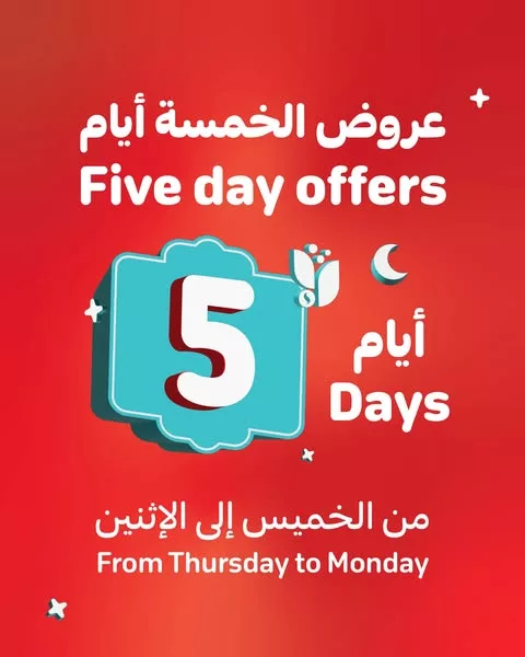 هذا العرض المميز متاح لمدة خمسة أيام فقط، من يوم الخميس إلى الاثنين، ابتداءً من 27 فبراير حتى 3 مارس 2025. سارع ولا تفوت هذه الفرصة للاستفادة من هذه التخفيضات الرائعة.