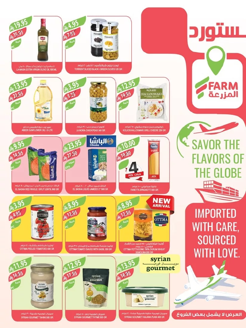 عروض أسواق المزرعة الرياض الأسبوعية الأربعاء 9 ربيع الآخر 1447هـ تقدم تخفيضات على الأجبان المستوردة مثل الجبن الكريمي والبارميزان بجانب منتجات الحليب العضوي والمكسرات المحمصة والخضروات والفواكه كالخوخ والرمان والبطيخ الأصفر كما تضم العروض أجهزة المايكروويف الذكية وأجهزة تحضير الكريب وأفران الطهي الكهربائية