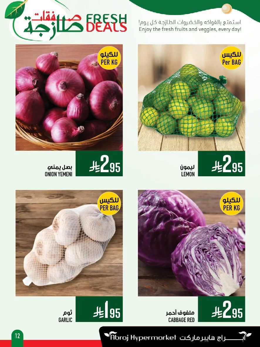 عروض أبراج هايبر ماركت هذا الاسبوع لم تتوقف عند الفواكه بل شملت الخضروات الأساسية والمميزة مثل الطماطم والخيار والباذنجان والملفوف الأحمر والبصل والثوم لتضمن للمستهلكين كل احتياجاتهم اليومية بأسعار موفرة كما شملت العروض أيضًا عصير المانجو الطازج بأحجام مختلفة