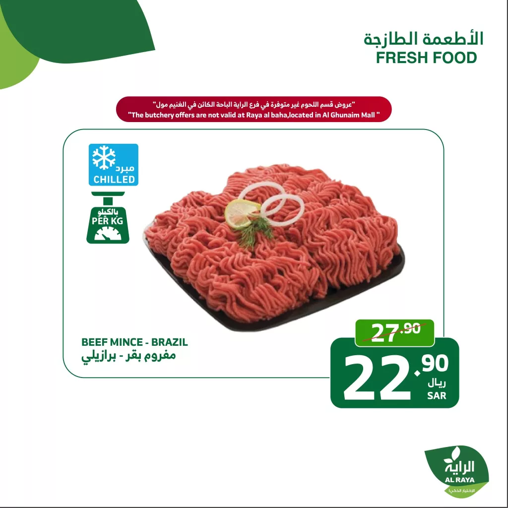 تتميز عروض أسواق الراية أيضا بتشكيلة متنوعة من الأجبان واللحوم الطازجة المستوردة من دول مختلفة مثل البرازيل ومصر لتمنح العملاء تجربة تسوق مميزة تلبي جميع احتياجات الأسرة من الأطعمة الطازجة بجودة عالية وأسعار مشجعة على الشراء.