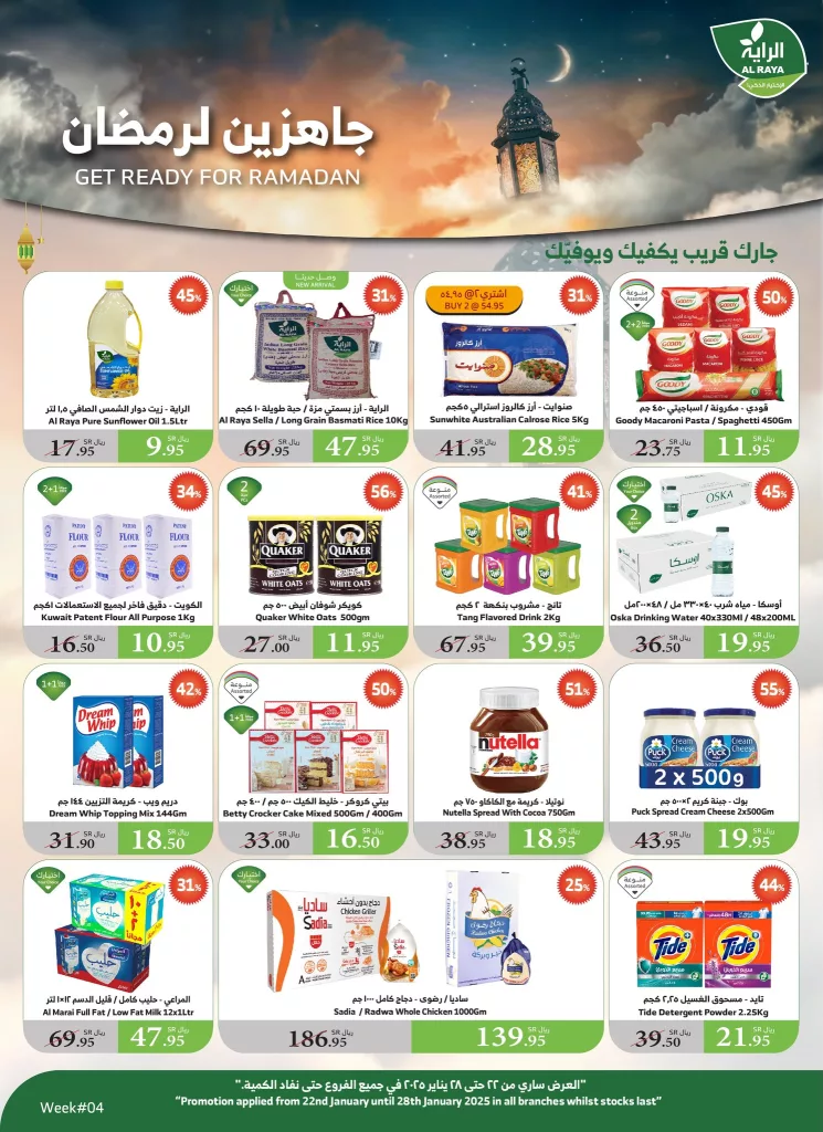 عروض أسواق الراية جدة الأربعاء 22 يناير 2025 تمنحك فرصة مذهلة للاستفادة من تخفيضات هائلة على المنتجات الأساسية تشمل العروض تخفيضات على الأرز البسمتي الحبوب الكاملة البقوليات والزيوت النباتية الصحية بالإضافة إلى المعلبات الغذائية والمخبوزات الطازجة والعصائر الطبيعية