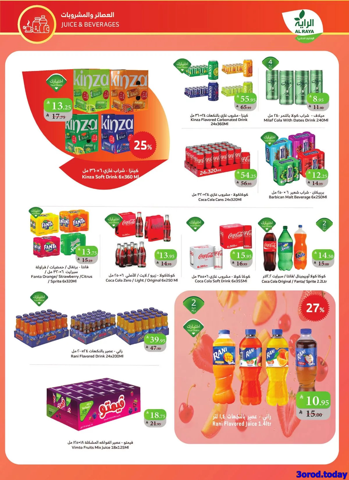 عروض أسواق الراية جدة الأسبوعية الأربعاء 1/10/2025 تبدأ بالعروض على المكانس اللاسلكية وأجهزة تحضير الزبادي وأجهزة أفران البيتزا الصغيرة ثم تقدم خصومات على اللحوم المستوردة والدواجن المبردة والأسماك المجمدة بجانب الخضروات كالسبانخ والفلفل الأحمر والبطاطس الحلوة والفواكه كالخوخ والبرتقال والأناناس