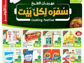 عروض أسواق الراية جدة الأسبوعية الأربعاء 7 جماد الاول 1447هـ تحتوي على عروض على الأغذية المحلية والمستوردة من المعكرونات والصلصات والعسل والفواكه المجففة والمخبوزات الشرقية والمكسرات والبهارات كما تتضمن تخفيضات على الأجهزة المنزلية مثل أفران الطهي وأجهزة التحميص ومكائن العجن الكهربائية وأجهزة تسخين الطعام