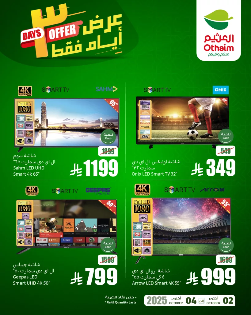 عروض اسواق العثيم 3 ايام فقط حتى 4 اكتوبر 2025 على الشاشات و الاجهزة الكهربائية الصغيرة بأفضل الاسعار