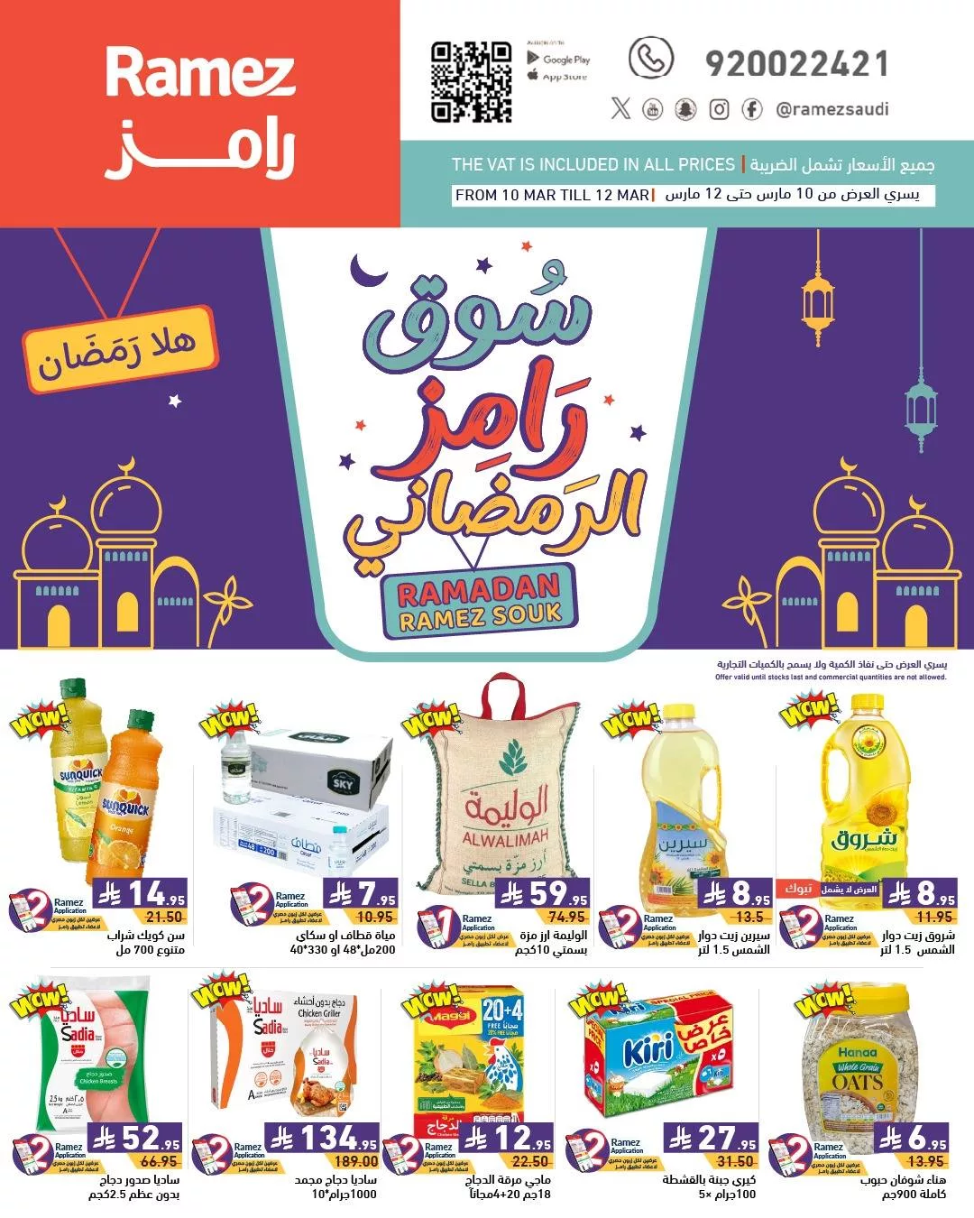 تقدم أسواق رامز السعودية عروضا مميزة بمناسبة شهر رمضان المبارك الاثنين 10 مارس 2025 حيث تشمل الخصومات مجموعة واسعة من المنتجات الغذائية الأساسية مثل الأرز والزيت والدقيق بالإضافة إلى العروض الرائعة على التمور والمعلبات المختلفة و تتيح هذه التخفيضات الفرصة للعملاء لشراء احتياجاتهم بأسعار تنافسية