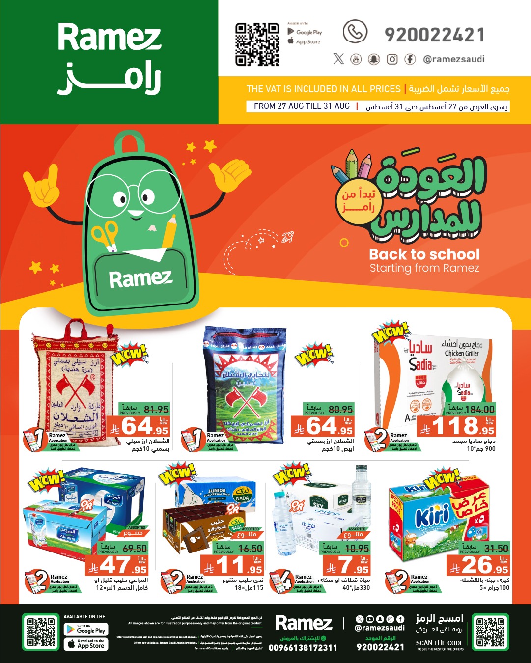 عروض أسواق رامز السعودية الأربعاء 27 أغسطس 2025 تبدأ التخفيضات بباقة مميزة من السلع الأساسية من الأرز البسمتي والدجاج المجمد والمياه المعبأة والحليب طويل الأجل بالإضافة إلى منتجات الأجبان المتنوعة و تضم ايضا الزيوت بأنواعها المختلفة من زيت الزيتون وزيت نباتي مع عروض قوية على العسل الطبيعي بارخص الاسعار