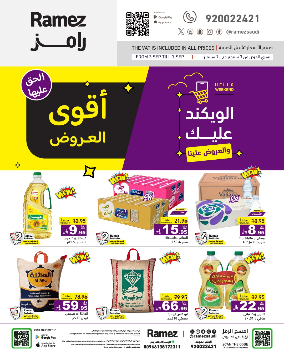 عروض أسواق رامز السعودية الأربعاء 3 سبتمبر 2025 تأتيكم بمجموعة واسعة من التخفيضات القوية علي الأرز والزيوت بأنواعها إضافة إلى منتجات الألبان والمياه المعبأة بتخفيضات مميزة و امتدت إلى منتجات التنظيف التي تعتبر عنصرا أساسيا في كل منزل حيث شملت عروضا على مساحيق الغسيل والمنظفات السائلة