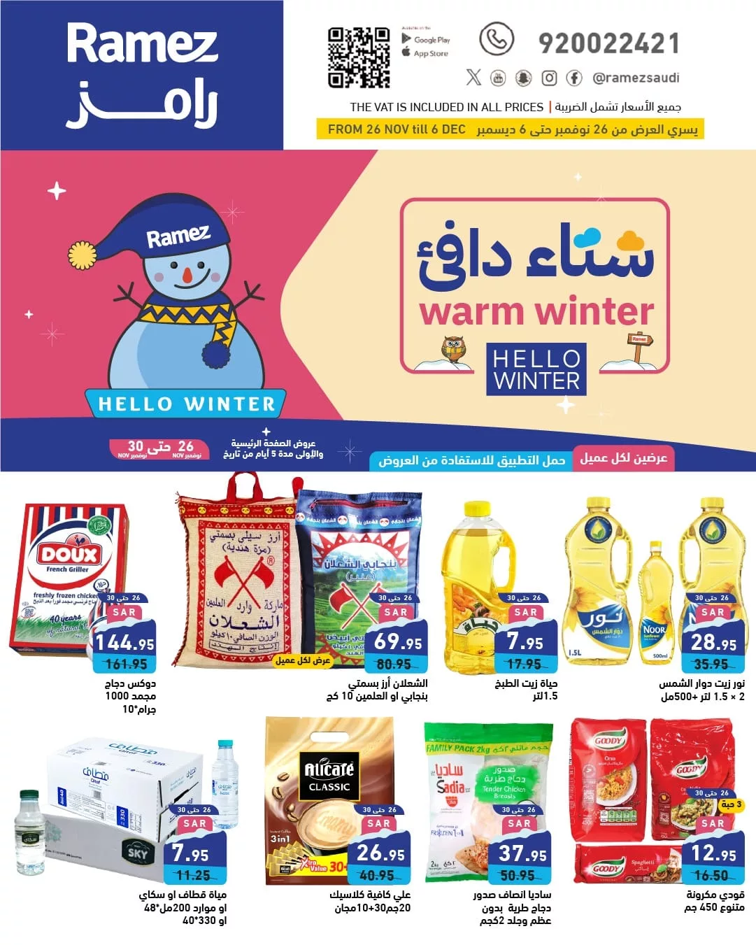 تقدم عروض أسواق رامز السعودية في هذا الشتاء الدافئ الثلاثاء 26 نوفمبر 2024 مجموعة مميزة من المنتجات الغذائية والسلع الأساسية بأسعار تنافسية تخدم كافة احتياجات الأسرة السعودية و تشمل العروض تخفيضات كبيرة على المواد الغذائية المجمدة مثل الدجاج والخضروات إلى جانب الزيوت والطحين وغيرها