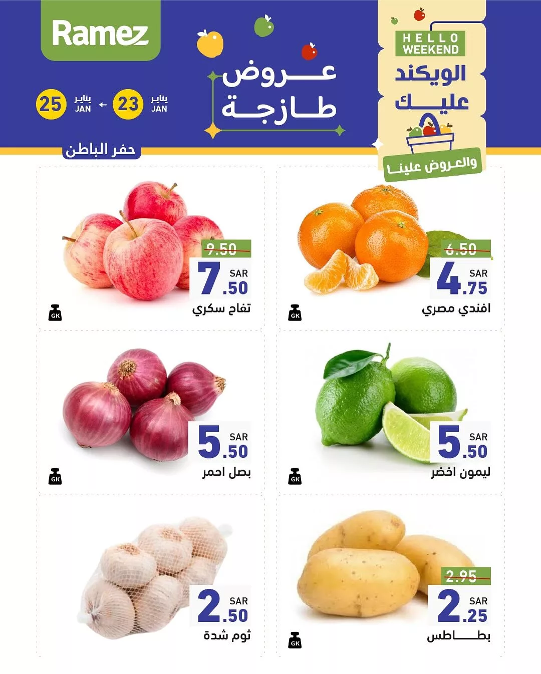 عروض أسواق رامز الويكند الخميس 23 يناير 2025 تقدم لك تخفيضات هائلة على المنتجات الطازجة تشمل العروض خصومات على اللحوم الطازجة الدواجن المجمدة والمأكولات البحرية بالإضافة إلى الفواكه الطازجة والخضروات العضوية التي تمنحك خيارات غذائية متنوعة