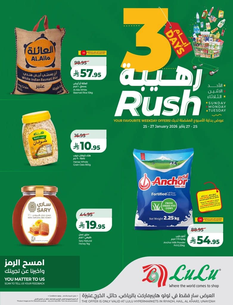 عروض اسواق لولو الرياض 3 ايام رهيبة 25 يناير 2026 افضل المنتجات المتنوعة في اسواق لولو الرياض و حائل ضمن عروض بداية الاسبوع المميزه و التي تستمر ايام الاحد و الاثنين و الثلاثاء من 25 حتى 27 يناير 2026 فقط على منتجات طازجه بأفضل الاسعار