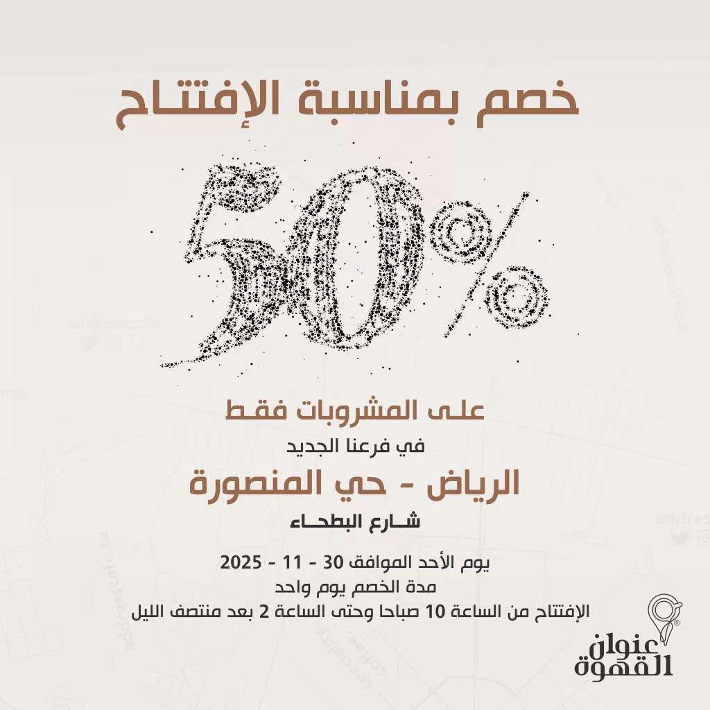 عروض افتتاح فرع عنوان القهوه الجديد في الرياض مع خصم 50% على المشروبات لا تفوتوا افضل عروض الافتتاح معنا