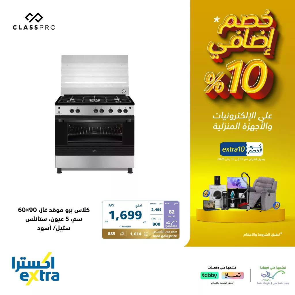 عروض اكسترا السعودية توفر لكم تخفيضات مذهلة على مجموعة واسعة من الإلكترونيات والأجهزة المنزلية حيث تشمل العروض تلفزيونات بأحدث التقنيات وأجهزة لابتوب مخصصة للألعاب بأفضل المواصفات وأجهزة منزلية تلبي احتياجات العائلة بأعلى جودة و يتميز العرض بخصم إضافي بنسبة 10% على المنتجات المشاركة