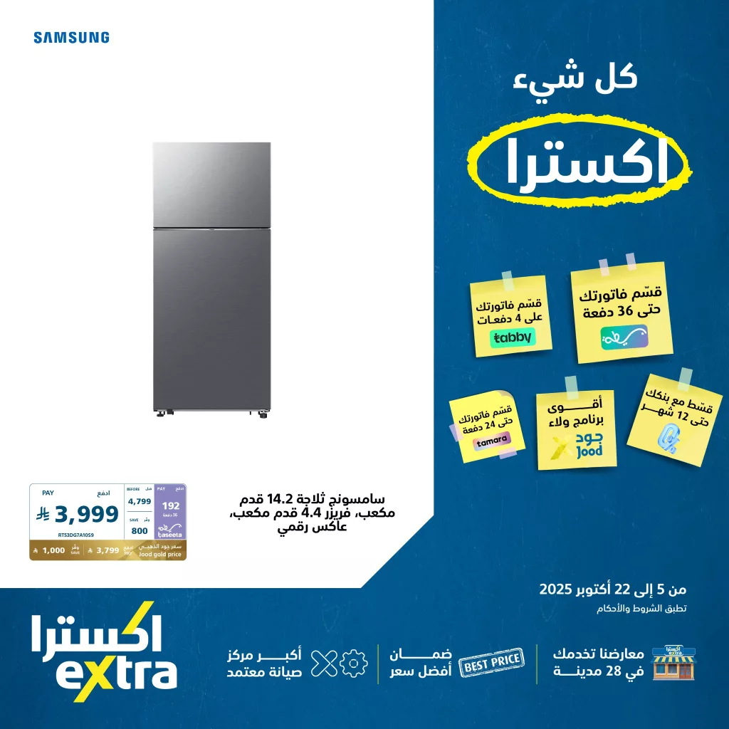 عروض اكسترا السعودية تقدم مجموعة واسعة من الأجهزة المنزلية من علامات مشهورة مثل سامسونج وكلاس برو وإل جي ضمن تشكيلات متجددة من الثلاجات والغسالات والأفران الكهربائية مدعومة بخيارات تقسيط متنوعة وبرامج ولاء عديدة لتسهل عملية الشراء باقل الاسعار ابقوا معنا ليصلكم كل جديد علي موقعكم عروض توداي