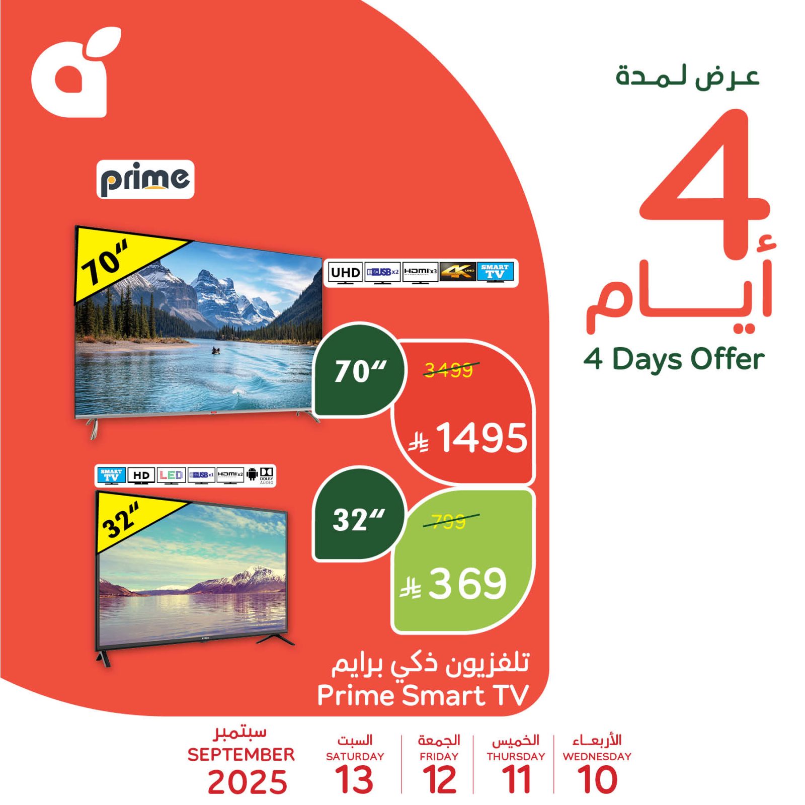 - شاشة 32 بوصة HD مع خصائص Smart TV، السعر 369 ريال بدل 795 ريال.