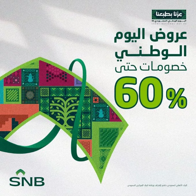 عروض البنك الاهلي السعودي لليوم الوطني 95 خصومات حتى 60% Posted by محمد السواح 16 سبتمبر، 2025 عروض البنك الاهلي السعودي لليوم الوطني السعودي 2025 خصومات على الخدمات حتى 60% محمد السواح 16 سبتمبر، 2025
