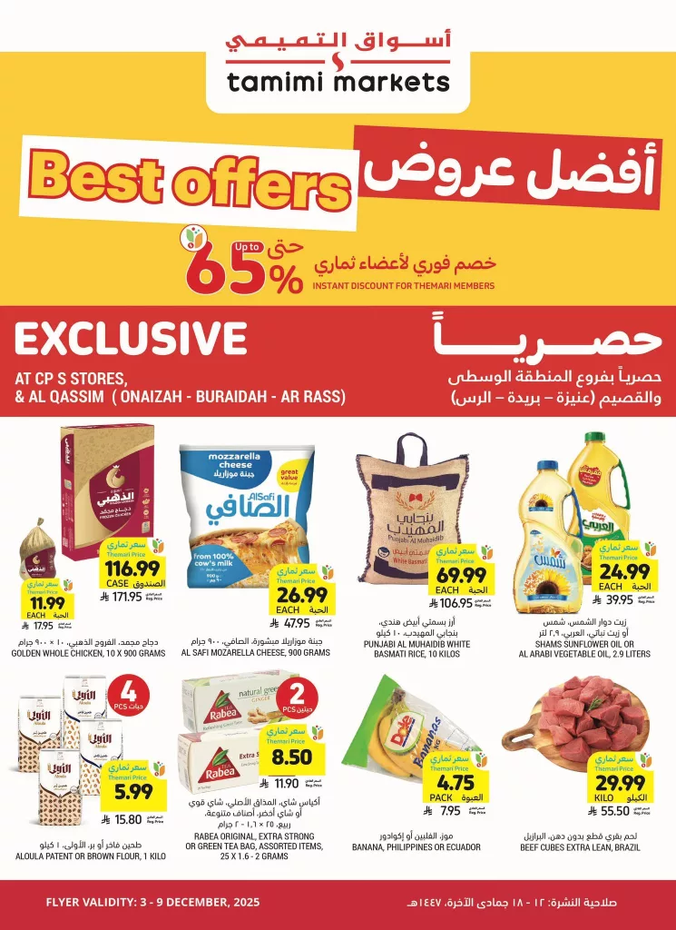 عروض التميمي القصيم بتاريخ الاربعاء 3 ديسمبر 2025 بتقدم ليكم منتجات الدواجن واللحوم الطازجة إضافة إلى الأجبان والألبان والعصائر وزيوت الطبخ كما تشمل العروض تشكيلة واسعة من الخضروات والفواكه والمنتجات المجمدة وغيرها من المنتجات و باقل الاسعار المناسبة للجميع فقط ابقوا معنا ليصلكم كل جديد .