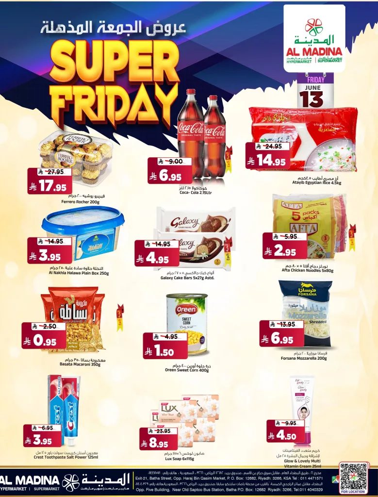 تعد عروض الهايبر ماركت من أبرز الفعاليات المنتظرة أسبوعيًا في المملكة العربية السعودية، حيث تقدم للمتسوقين مجموعة هائلة من الخصومات على مختلف السلع الاستهلاكية. ويأتي عرض “Super Friday” من المدينة هايبر ماركت ليواصل هذه التقاليد، بتخفيضات مذهلة تشمل المواد الغذائية، المنتجات الطازجة، مستحضرات العناية الشخصية، والمزيد. انطلقت هذه العروض يوم الجمعة 13 يونيو 2025 وتستمر حتى السبت 14 يونيو 2025 لتمنح المستهلكين فرصة ذهبية للتوفير.