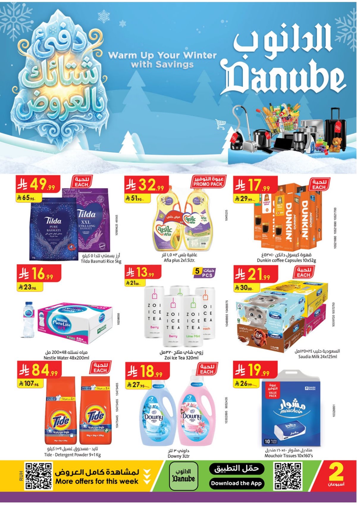 عروض الدانوب الرياض الأربعاء 24/12/2025 تبدأ بالأجهزة مثل محضر خضار كهربائي ومقلاة هوائية صغيرة وصانعة وافل مستطيلة ومجفف أعشاب منزلي وسخان ماء سريع ثم تضم الأغذية الخس الفرنسي والكرنب الأبيض والبطاطا الحلوة والكمثرى الآسيوية والأناناس الطازج والحبوب الجافة والعدس الأصفر والحمص المعلب