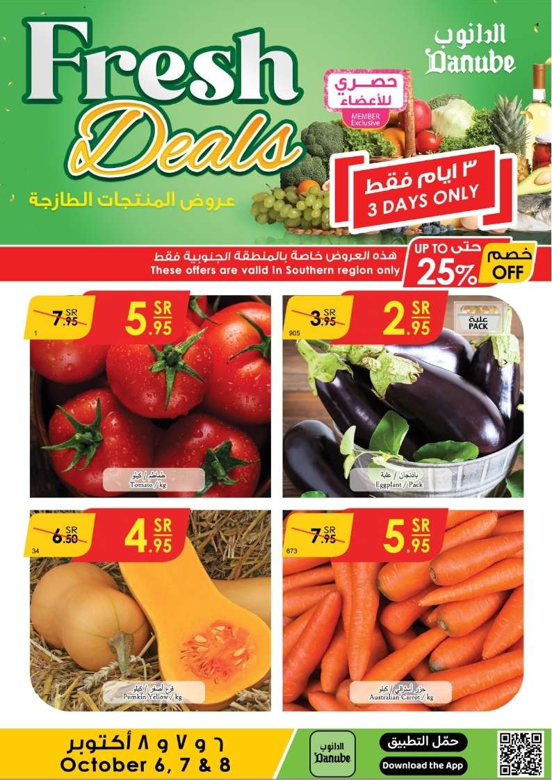 عروض الدانوب جازان الأحد 6 أكتوبر 2024 تقدم تشكيلة مميزة من المنتجات الطازجة مثل الخضروات والفواكه مع خصومات تصل إلى 25% على مجموعة واسعة من الأصناف و تشمل هذه العروض الحصرية الطماطم و الباذنجان والجزر الأسترالي مما يتيح لعملاء المنطقة الجنوبية الاستمتاع بأفضل الأسعار