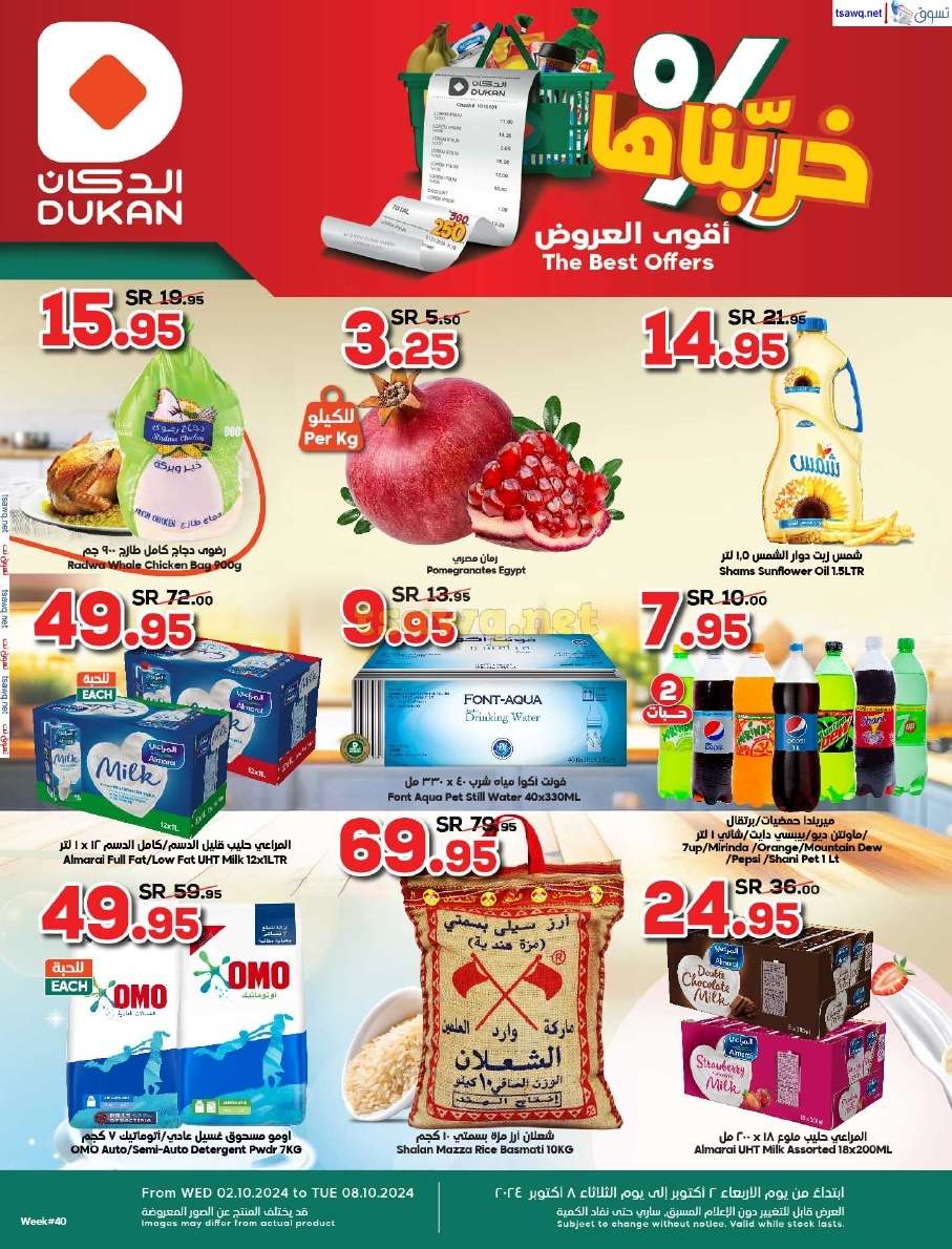 عروض الدكان جدة الأسبوعية الأربعاء 2 أكتوبر 2024، تشمل تخفيضات هائلة على اللحوم الطازجة مثل لحم العجل والدجاج المجمد بالإضافة إلى العروض على الأسماك الطازجة مثل السلمون والروبيان كما تتوفر عروض رائعة على الفواكه الطازجة مثل التفاح والموز والخضروات