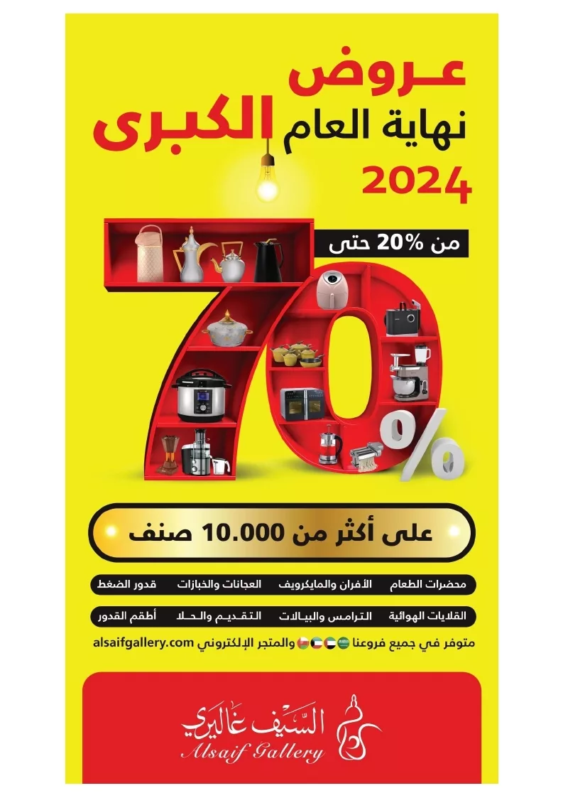 عروض السيف غاليري هي فرصة ذهبية لكل من يبحث عن أجهزة ذات جودة عالية بأسعار مخفضة و يمكن للمتسوقين العثور على خلاطات محضرات قهوة و قلايات وأجهزة تسخين الماء بتصاميم مبتكرة تجمع بين الأداء العالي والشكل الأنيق تابعونا علي موقعكم عروض توداي لمعرفة كل جديد .