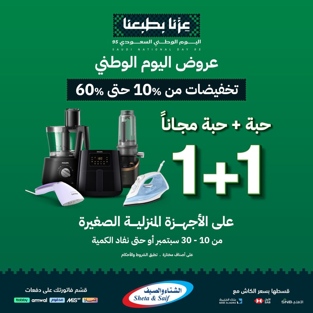 عروض الشتاء والصيف مستمرة حتى 30 سبتمبر 2025 وهي بمناسبة اليوم الوطني السعودي 95 حيث تقدم خصومات مميزة تبدأ من 10% وتصل حتى 60% على مجموعة مختارة من الأجهزة المنزلية الصغيرة كما يتوفر عرض مميز 1+1 على أصناف محددة ابقوا معنا ليصل اليكم كل جديد علي موقعكم عروض توداي