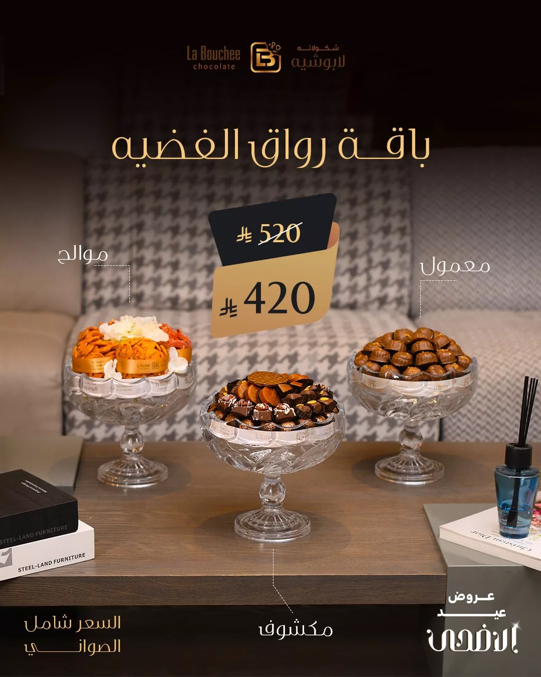 في هذه المقالة سنستعرض تفاصيل عروض عيد الأضحى من لابوشيه والتي تشمل تشكيلات فاخرة من الشوكولاتة والمعمول المقدم في صواني أنيقة، لتضيف لمسة فاخرة لكل منزل سعودي يحتفل بهذه المناسبة