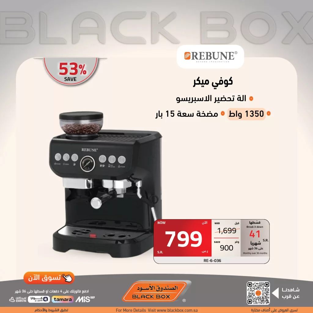 عروض الصندوق الأسود تقدم تخفيضات كبيرة تصل إلى 61% على مجموعة متنوعة من الأجهزة المنزلية بما في ذلك أجهزة القهوة و الميكروويف والمكانس الكهربائية و الأجهزة المتاحة تجمع بين الأداء العالي والتصميم العصري لتلبية احتياجات المستهلكين وتحسين تجربة الاستخدام في المنازل.