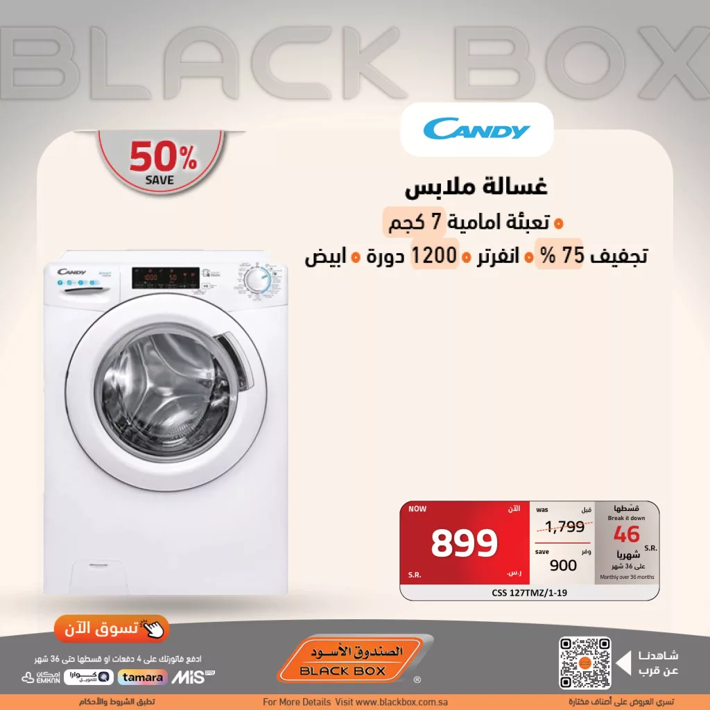 عروض الصندوق الأسود تقدم خصومات مذهلة على مجموعة واسعة من الأجهزة المنزلية التي تشمل الغسالات و الجلايات والثلاجات و هذه العروض تتيح للعملاء فرصة الاستفادة من توفير يصل إلى 50% على بعض المنتجات المختارة مثل الغسالات من ماركة كاندي وجلاية الصحون من بيكو .