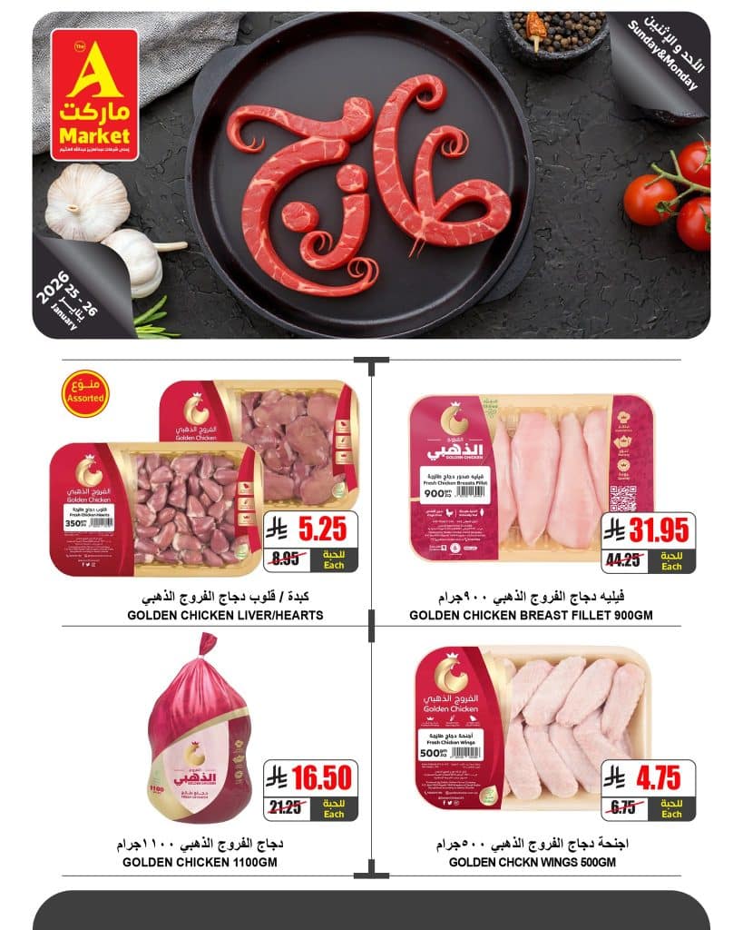 عروض ايه ماركت الرياض الطازج الاحد 6-8-1447هـ الموافق 25 يناير 2026 و تحتوي علي تشكيلة من الخضروات و الفواكه الطازجة منها البطاطس و الخيار و الطماطم و ايضا الموز و الفراولة و التفاح بجانب ذلك بتوفر ايضا تشكيلة من اللحوم الشهية و باسعار رائعة لمدة يومان ابقوا معنا ليصلكم كل جديد عن عروض السعودية