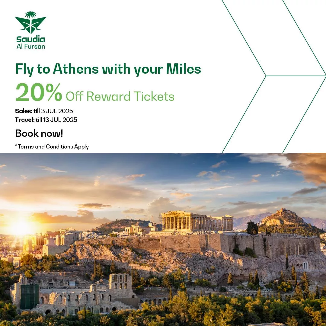 تشهد عروض الطيران في السعودية إقبالًا كبيرًا من المسافرين الباحثين عن الفرص الذهبية لاستكشاف العالم بأسعار تنافسية، وتأتي عروض الفرسان من الخطوط السعودية كواحدة من أبرز العروض الحالية التي تمنحك الفرصة للاستفادة من أميالك في برنامج الفرسان بطريقة ذكية ومربحة. العرض الحالي يشمل خصم 20% على تذاكر المكافآت إلى وجهات مميزة وهي أثينا، الدار البيضاء، وبرشلونة، ويسري حتى 3 يوليو 2025 للحجز، بينما يمكن السفر حتى 13 يوليو 2025، ليكون توقيتًا مثاليًا لعطلتك الصيفية المنتظر