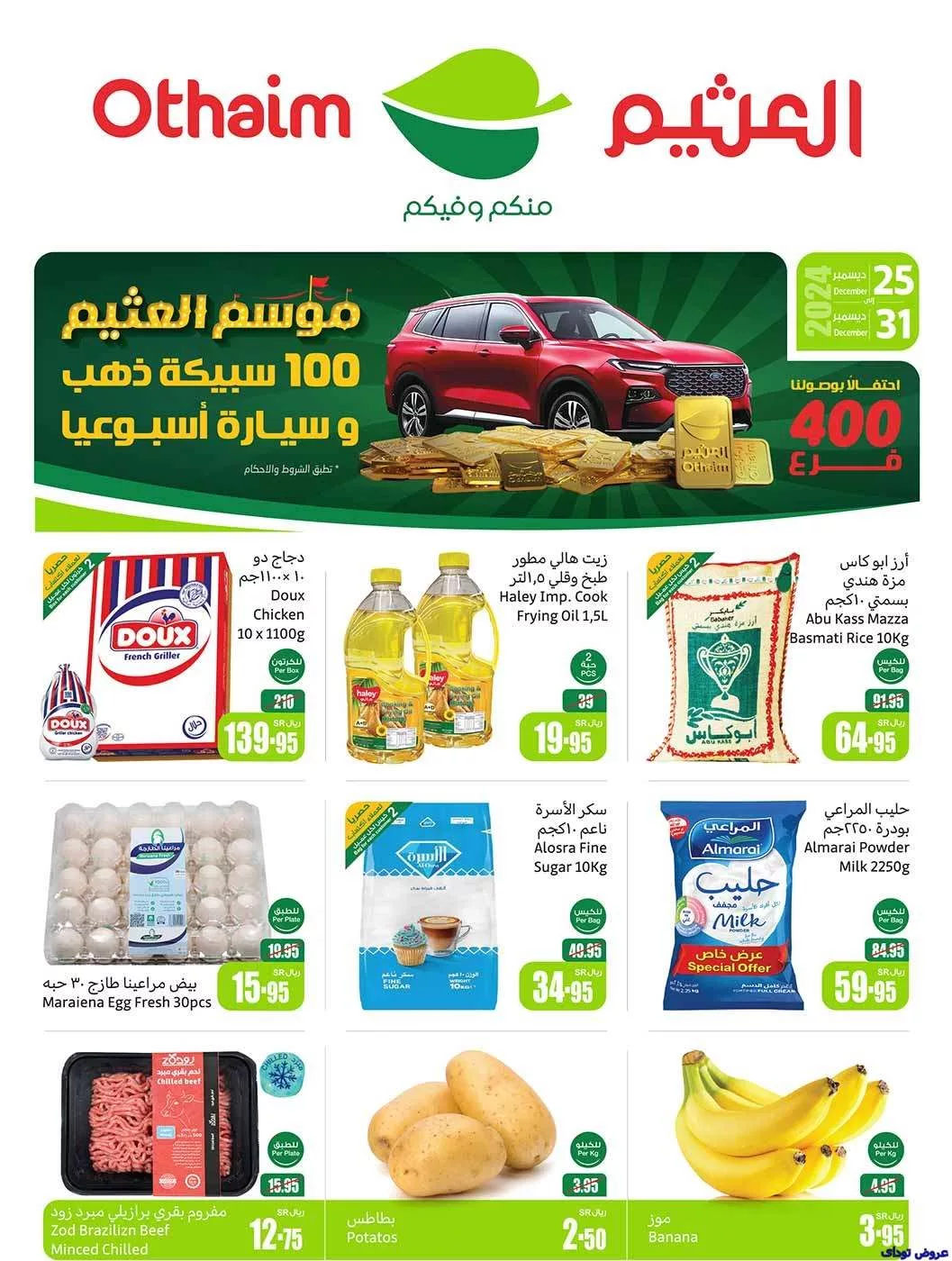 عروض العثيم الأسبوعية الأربعاء 25 ديسمبر 2024 تقدم لكم خصومات هائلة على مجموعة من السلع الغذائية الأساسية و تشمل العروض الحبوب الكاملة و الزيوت النباتية، والسكر بأسعار تنافسية كما تتوفر تخفيضات على اللحوم الطازجة، الدواجن المبردة والمأكولات البحرية المجمدة، بجانب الفواكه والخضروات الموسمية