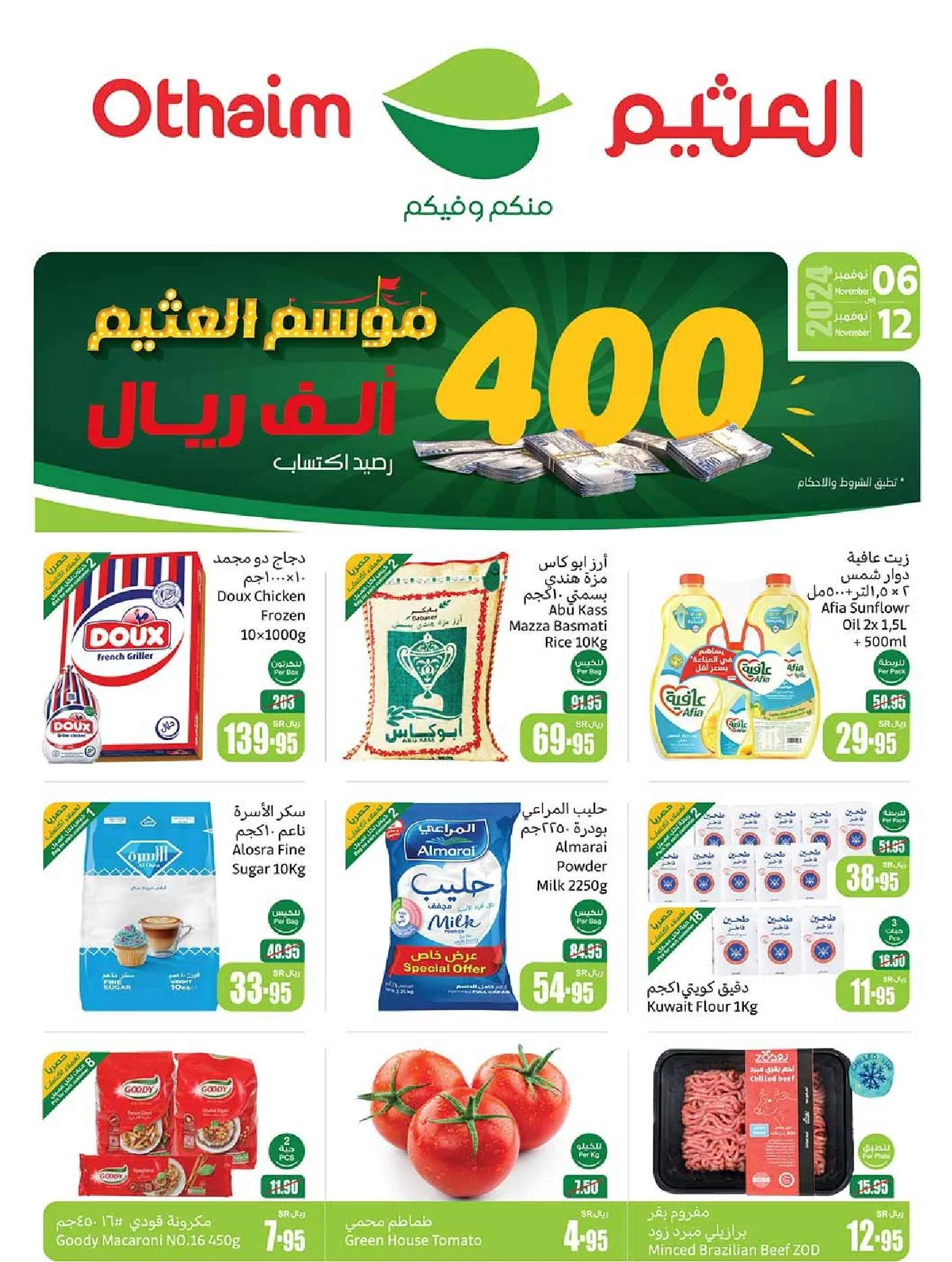 عروض العثيم الأسبوعية الأربعاء 6 نوفمبر 2024 توفر خصومات على الخضروات والفواكه الطازجة مع عروض خاصة على منتجات الألبان كما تشمل العروض الإلكترونيات المنزلية مثل أجهزة التلفاز وسماعات الرأس لتجربة تسوق مميزة تابعونا علي موقعكم عروض توداي لمعرفة كل جديد