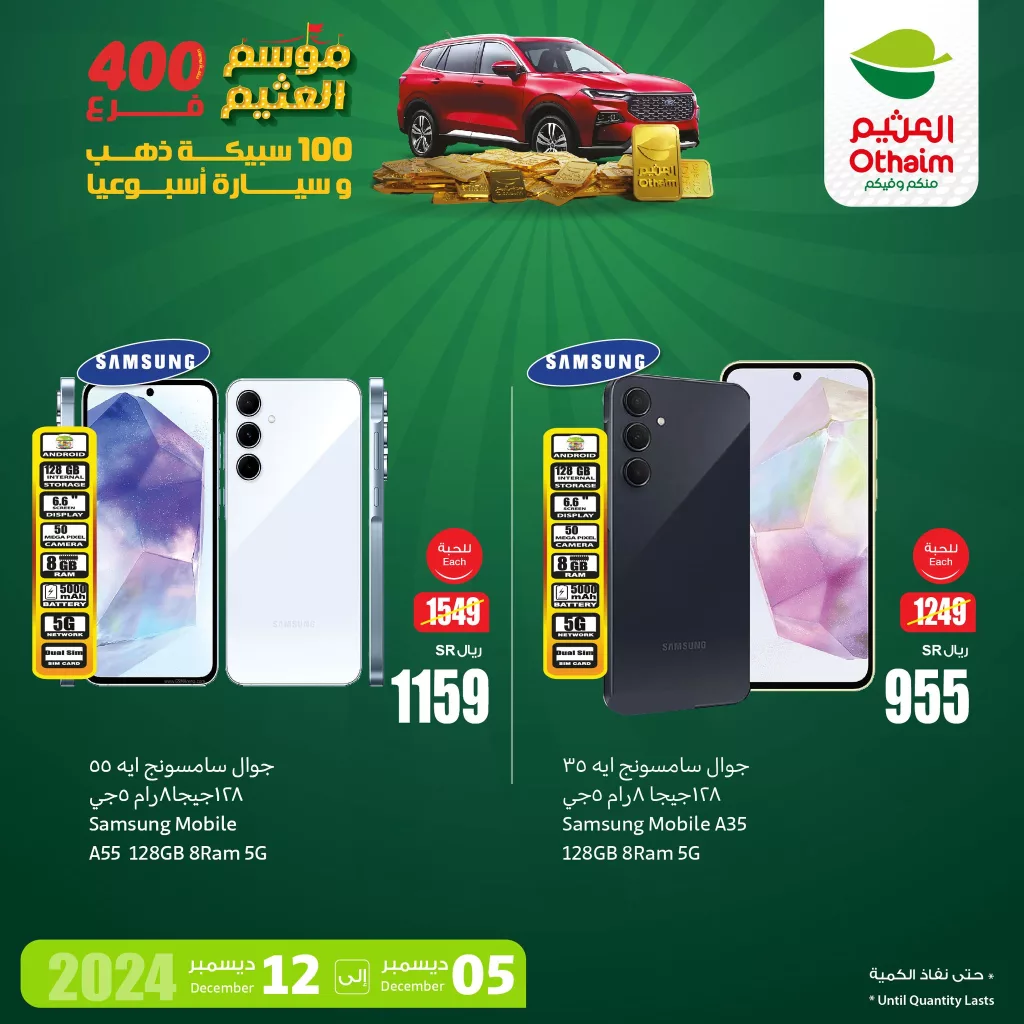 عروض العثيم الخميس 5 ديسمبر 2024 تقدم تخفيضات كبيرة على العديد من الإلكترونيات والهواتف الذكية و تشمل أحدث أجهزة بلايستيشن وجوالات سامسونج المميزة و تأتي هذه العروض ضمن موسم العثيم 400 فرع الذي يتيح فرصا استثنائية للفوز بـ100 سبيكة ذهب وسيارة أسبوعية
