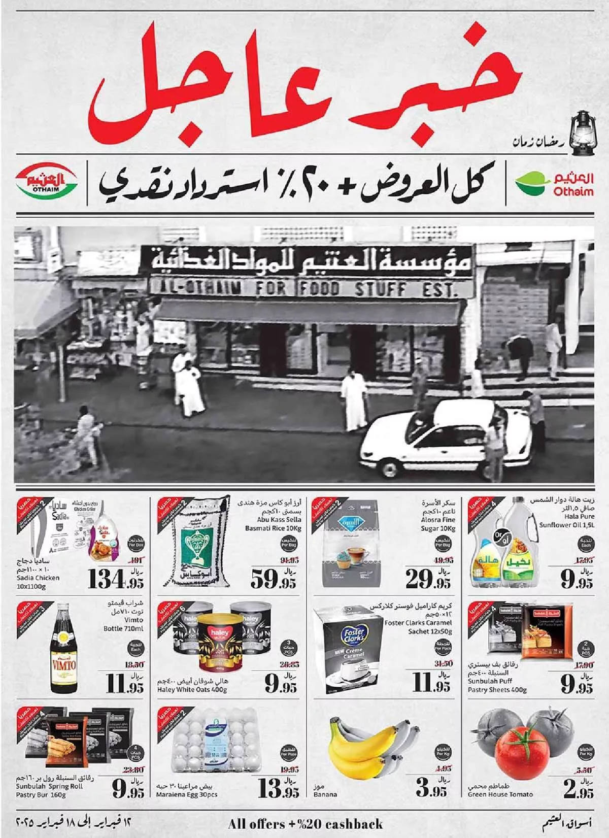 عروض العثيم الأسبوعية الأربعاء 12 فبراير 2025 تأتي هذا الأسبوع بتخفيضات مذهلة على الخضروات والفواكه الطازجة حيث تشمل العروض خصومات على التفاح الأحمر و البرتقال و الموز والطماطم بأسعار تنافسية وجودة ممتازة كما تتوفر عروض مميزة على منتجات الألبان مثل الحليب الطازج و الجبن الأبيض و الزبادي والقشطة
