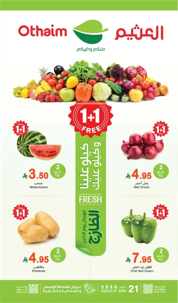EPyENV - عروض العثيم الطازج الاثنين 21 ابريل 2025 | كيلو عليك و كيلو علينا 1+1 مجانا