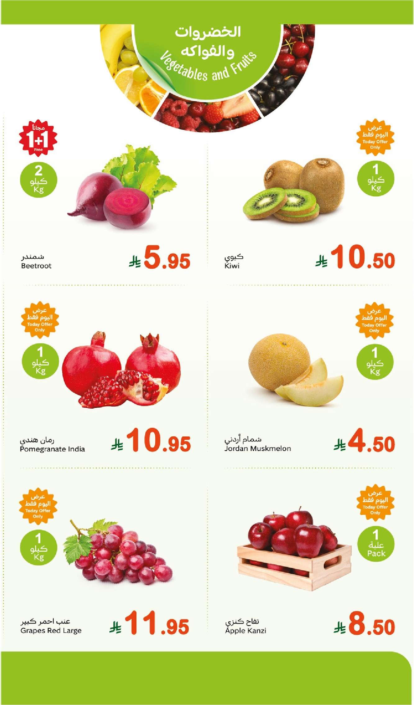 عروض العثيم المنطقة الغربية الاثنين 5-5-2025 تقدم تشكيلة مميزة من الخضار والفواكه الطازجة التي تلبي احتياجات الأسرة السعودية بجودة عالية وتنوع رائع حيث تتوفر فواكه مثل العنب الأبيض والأحمر والأفوكادو والكمثرى والرمان الهندي بتغليف صحي وكميات مزدوجة ضمن عروض 1+1