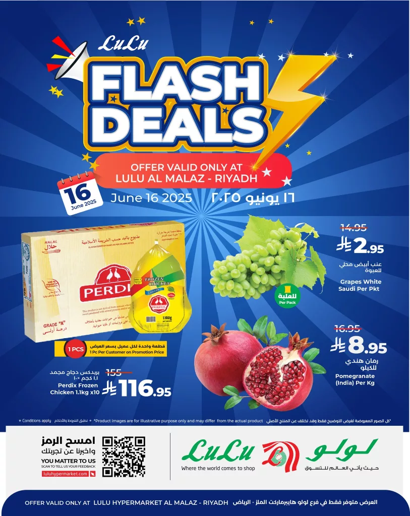 عروض الهايبر ماركت في السعودية دائمًا ما تكون محط أنظار المتسوقين الباحثين عن الجودة والسعر في نفس الوقت، وتأتي عروض لولو هايبرماركت فرع الملز – الرياض تحت اسم Flash Deals لتؤكد على التزام لولو بتقديم أفضل المنتجات بأقل الأسعار في يوم واحد فقط، وهو 16 يونيو 202