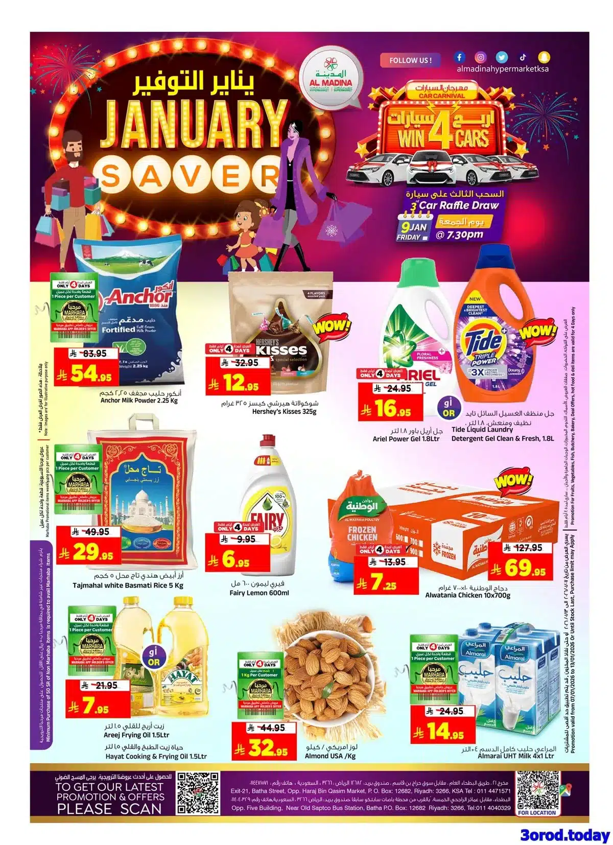 تحتوي عروض المدينة هايبر ماركت اليوم علي : دجاج الوطنية مجمد – زيت أريج للقلي – زيت حياة للطبخ – لوز أمريكي – حليب المراعي طويل الأجل – تونة ألوها خفيف – مرقة دجاج ألوها – نودلز إندومي كاسات – إندومي دجاج خاص – إندومي شعيرية مقلية – إندومي كاري – إندومي خضار – شطة تويا الحارة – محلي ستيفيانا
